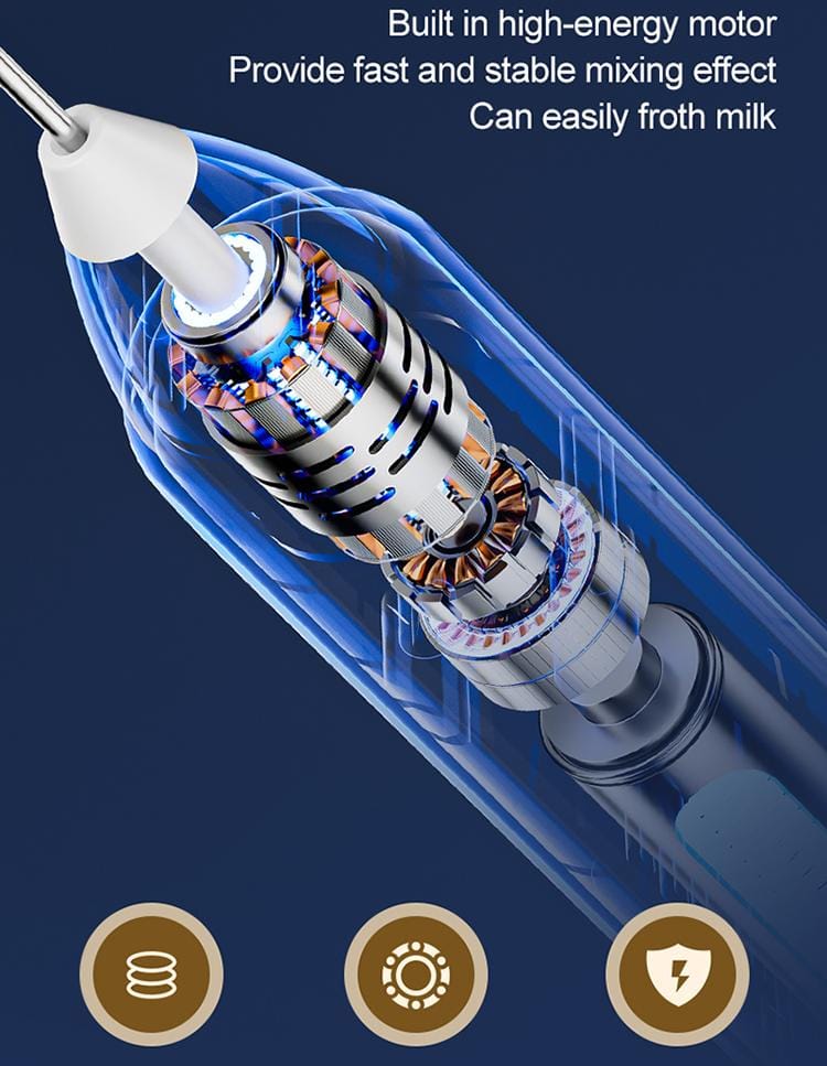 Perfecto para espumar café, mezclar proteínas, batir huevos o preparar recetas rápidas en segundos.