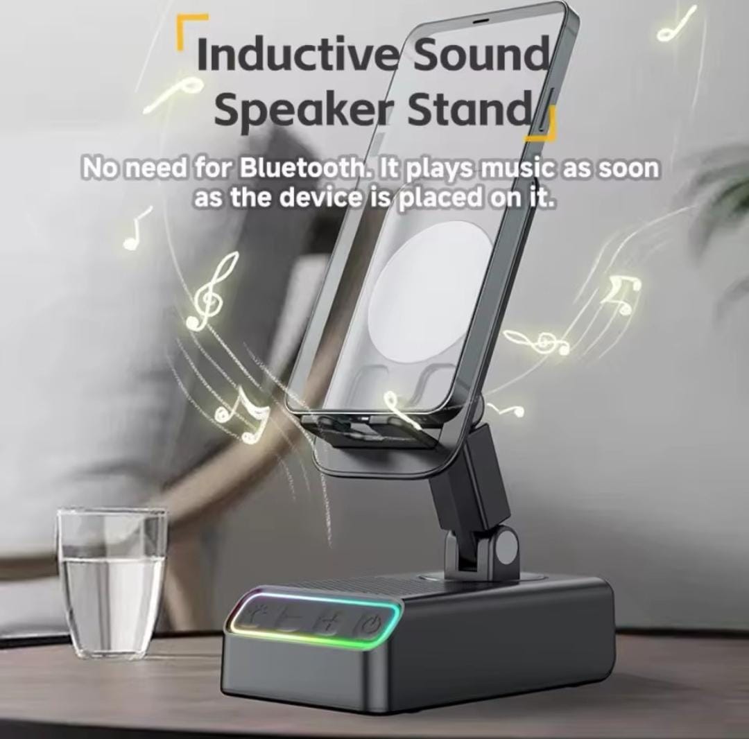 Soporte giratorio para teléfono móvil, altavoz Bluetooth con sensor, luz de color RGB, calidad de sonido, amplificación de escritorio.